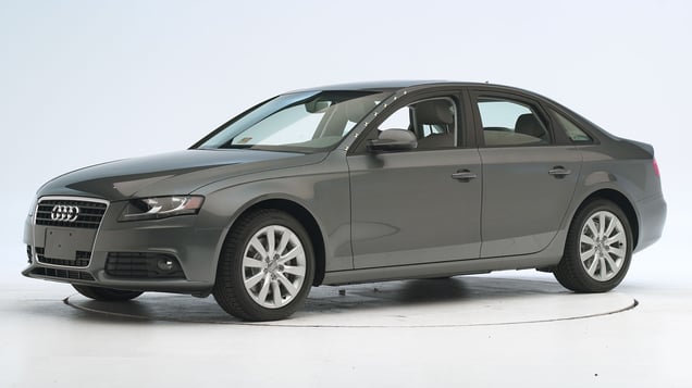 The Audi A4 was redesigned for the 2009 model year. Moderate overlap frontal ratings are assigned by the Institute based on a test conducted by Volkswagen/Audi.