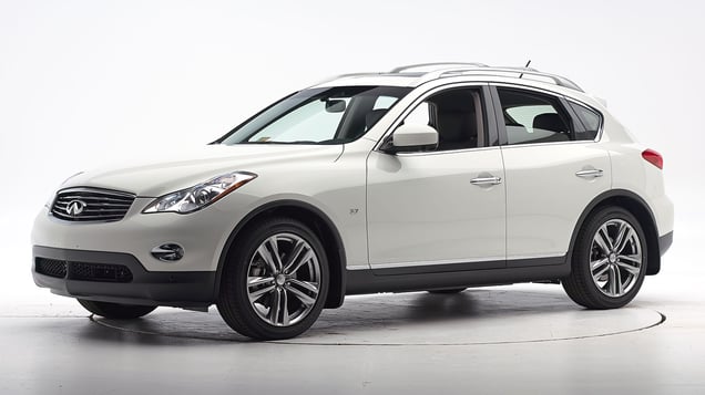 Tested vehicle: 2014 Infiniti QX50 4-door 4wd with standard front and rear head curtain airbags and standard front seat-mounted torso airbags