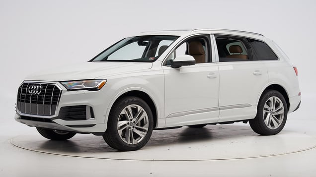 The Audi Q8 was introduced in the 2019 model year. The Q8 is derived from the Q7, but it has a more sloping roofline and only two rows of seats instead of three. Passenger-side small overlap frontal ratings are assigned by the Institute based on a test conducted by Volkswagen/Audi.