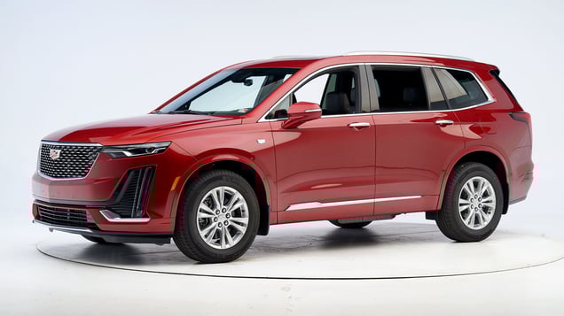 The Cadillac XT6 was introduced in the 2020 model year. This midsize luxury SUV is built on the same platform as the GMC Acadia. Beginning with 2020 models built after August 2019, the passenger-side front door hinge pillar and A-pillar were reinforced to improve occupant protection in passenger-side small overlap frontal crashes. Beginning with 2020 models built after October 2019, changes to the side curtain airbags were implemented to further improve occupant protection.