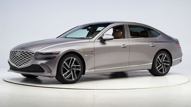 The Genesis G80 was redesigned for the 2021 model year. Passenger-side small overlap frontal ratings are assigned by the Institute based on a test of a 2021 G80 conducted by Hyundai.