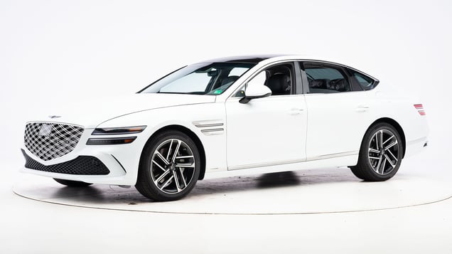 The Genesis G80 was redesigned for the 2021 model year. Passenger-side small overlap frontal ratings are assigned by the Institute based on a test of a 2021 G80 conducted by Hyundai.