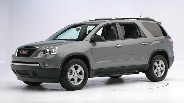 Tested vehicle: 2008 GMC Acadia SLE 4-door 4wd with standard head curtain airbags for all three rows of seats and standard front seat-mounted torso airbags