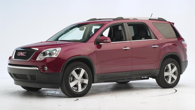Tested vehicle: 2008 GMC Acadia SLE 4-door 4wd with standard head curtain airbags for all three rows of seats and standard front seat-mounted torso airbags
