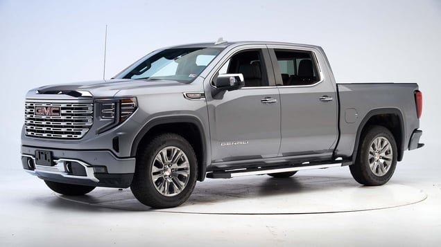 The Chevrolet Silverado 1500 and GMC Sierra 1500 Crew Cab were redesigned for the 2019 model year. Two tests of the Silverado were conducted because the rear passenger data acquisition system failed during the first test. Driver dummy injuries, rear dummy restraints and kinematics and structural ratings are based on both tests. The rear dummy injury values are based only on the second test.
