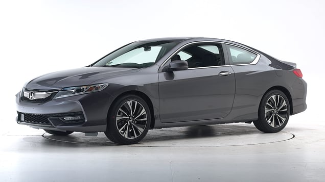Tested vehicle: 2013 Honda Accord EX 2-door with standard front and rear head curtain airbags and standard front seat-mounted torso airbags