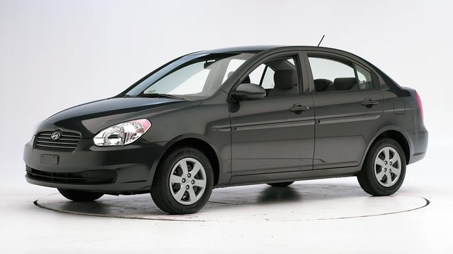 Tested vehicle: 2007 Hyundai Accent GLS 4-door with standard front and rear head curtain airbags and standard front seat-mounted torso airbags