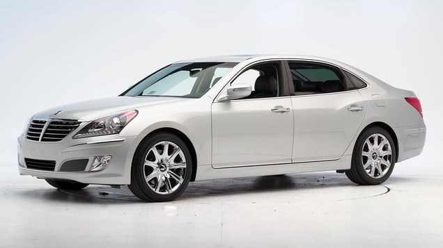 The Hyundai Equus was introduced in the 2011 model year. The car is derived from the Hyundai Genesis, but is larger, heavier, and more expensive. Frontal ratings are assigned by the Institute based on a test conducted by Hyundai. (The tested car was designated as a 2010 model but was representative of 2011 models built for the US market.)