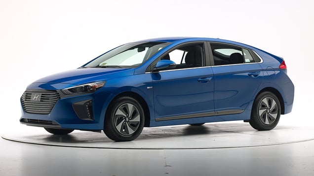 Moderate overlap frontal ratings are assigned by the Institute based a test conducted by Hyundai. Ratings apply to both the Ioniq Hybrid and Ionic Plug-in Hybrid models, but not the Ionic Electric (which has no gasoline engine).