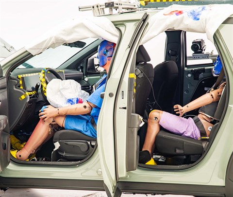 The driver's space was maintained well, and risk of injuries to the dummy's legs and feet was low.