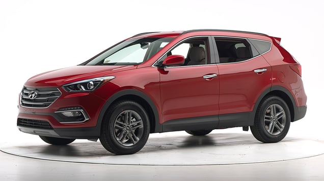 Passenger-side small overlap frontal ratings are assigned by the Institute based on a test conducted by Hyundai. The ratings on this page apply to both the 3-row Santa Fe (tested) and the Santa Fe Sport through the 2018 model year.