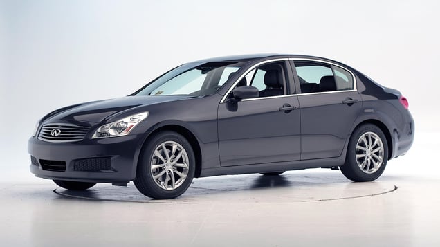 The Infiniti G35 was redesigned for the 2007 model year and renamed the G37 in the 2009 model year because the engine size was increased. Beginning with 2011 models, a smaller engine was added, and this version was named the G25. Collectively, all 2007 and later models are referred to as the Infiniti G. Frontal ratings are assigned by the Institute based on a test conducted by Nissan.