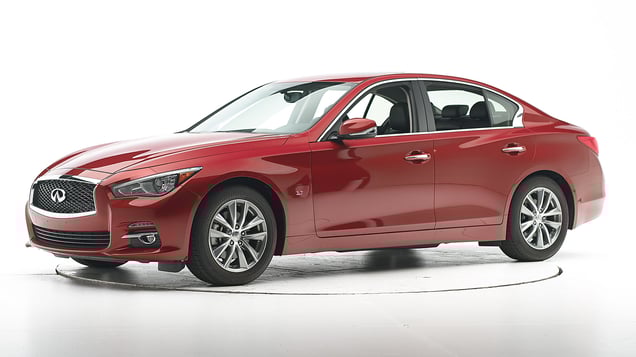 The Infiniti G was redesigned for the 2014 model year and renamed the Q50. Moderate overlap frontal ratings are assigned by the Institute based on a test conducted by Nissan.