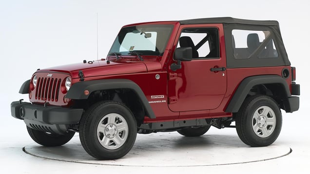 The Institute tested the 4-door Wrangler first, which received a Good overall frontal crash test rating. Therefore, frontal ratings for the 2-door are assigned by the Institute based on a test conducted by Chrysler. These ratings apply only to the 2007-17 Wrangler and 2018 Wrangler JK.