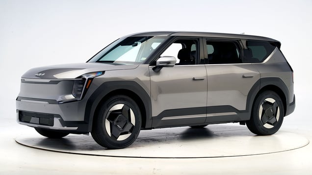 The Kia EV9, an all-electric SUV, was introduced for the 2024 model year. Passenger-side small overlap frontal ratings are assigned by the Institute based on a test of a 2024 EV9 conducted by Hyundai/Kia. These ratings also apply to the Hyundai Ioniq 9, introduced for the 2026 model year.