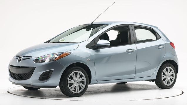 Tested vehicle: 2011 Mazda 2 Touring 4-door hatchback with standard front and rear head curtain airbags and standard front seat-mounted torso airbags