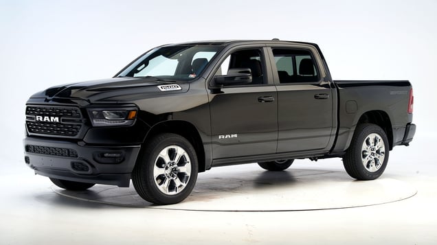 Two tests of the Ram 1500 Crew Cab were conducted by the Institute; vehicle specifications for the two trucks were identical. In the first test, Fiat Chrysler identified possible prior dummy ankle damage that may have caused elevated injury measures on the left lower leg. In the second test with a new ankle assembly installed, there were also indications of elevated left lower leg injury. Therefore, the ratings are based on combined results from both tests.