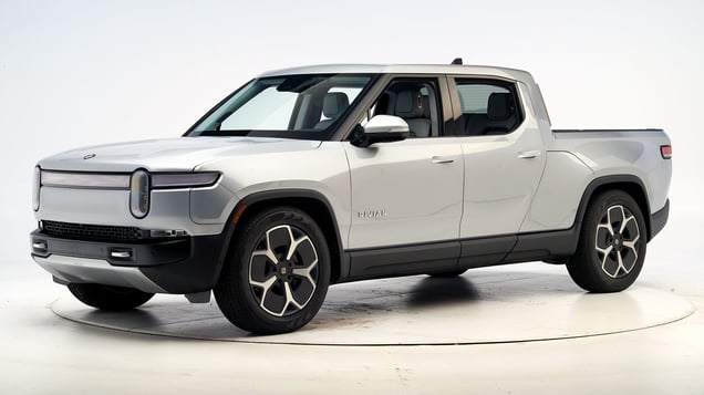 The Rivian R1T, an all-new electric crew-cab pickup truck, was introduced in the 2022 model year. Passenger-side small overlap frontal ratings are assigned by the Institute based on a test of a 2022 R1T conducted by Rivian.