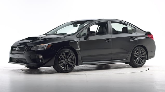 Two tests of the WRX were conducted, one of a 2015 model by the Institute and the other of a 2017 model by Subaru. These vehicles are rated separately, except that the structure ratings for both vehicles are based on both tests.