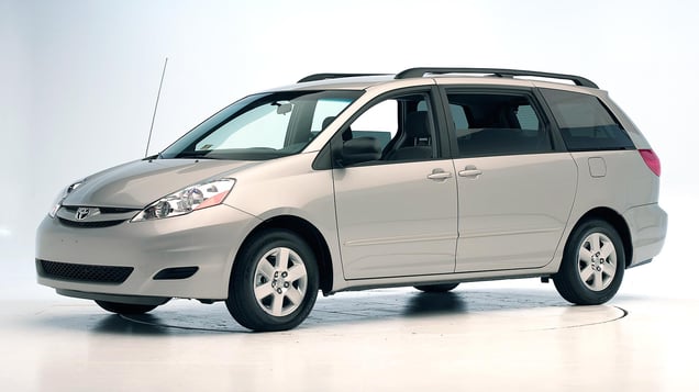 Tested vehicle: 2005 Toyota Sienna LE with optional head curtain airbags for all three rows of seats and optional front seat-mounted torso airbags