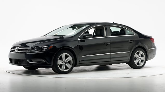 The Volkswagen CC was introduced in the 2009 model year. The car remains a variant of older (2006-10) models of the Volkswagen Passat sedan with a lower roofline and frameless side windows. Frontal ratings are based on an earlier Institute test of a 2006 model Passat.